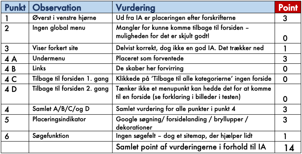 Jeg er på undersiden: Dekorationer – der står bryllup, både i undersidens menupunkt og på sitet underhovedbillede, hvilket er lidt sandt. Ikke helt korrekt. Point 1